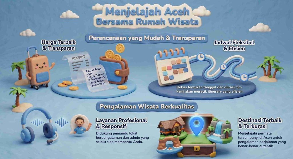 Jelajahi Aceh dengan paket hemat dan fasilitas lengkap. Pilih destinasi favorit Anda dan ciptakan kenangan indah bersama kami!
